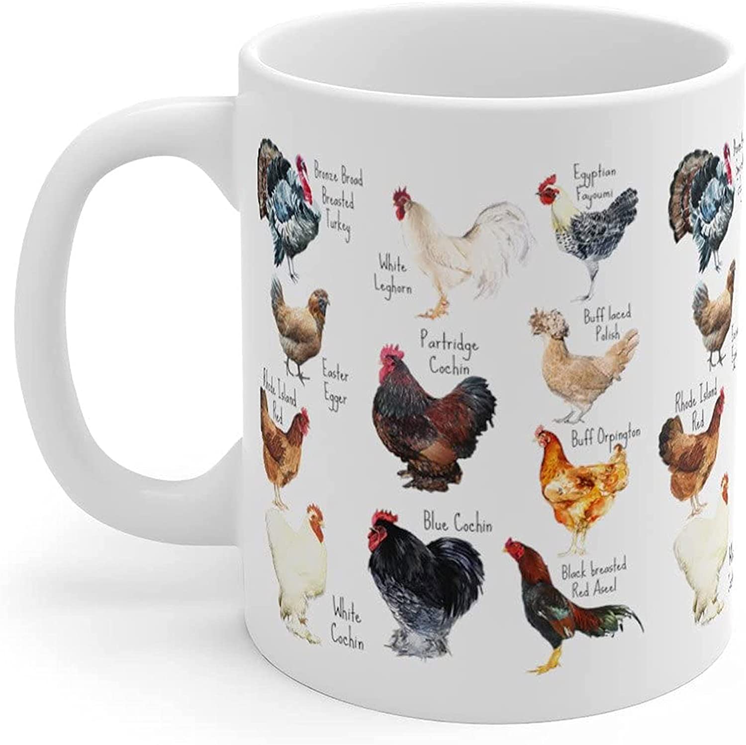 - UNIQUE DESIGN: The unique design with some breeds of chicken is printed around the mug with vivid color. This humorous chicken mug chicken lover gifts for women features high-definition is suitable for both right and left-handed users.